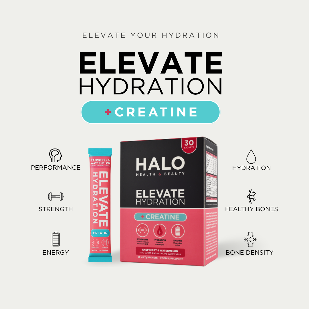 Elevate Hydration +Creatine has been created to help you drink more water and feel more energised, so you can train harder and recover faster. If you struggle with drinking water on a daily basis, we can help you! Our handy on the go sachets contain delicious natural flavours, with zero sugar and contain electrolytes and vitamins.
