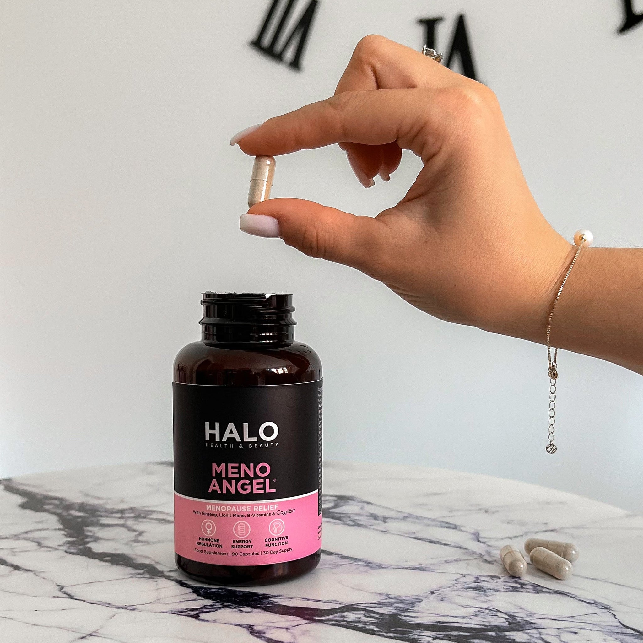 Meno Angel is your all-in-one daily supplement. Formulated by experts to target all three stages of the menopause, each ingredient is carefully selected to alleviate hot flushes, night sweats, fatigue, brain fog and maintain hormonal balance.